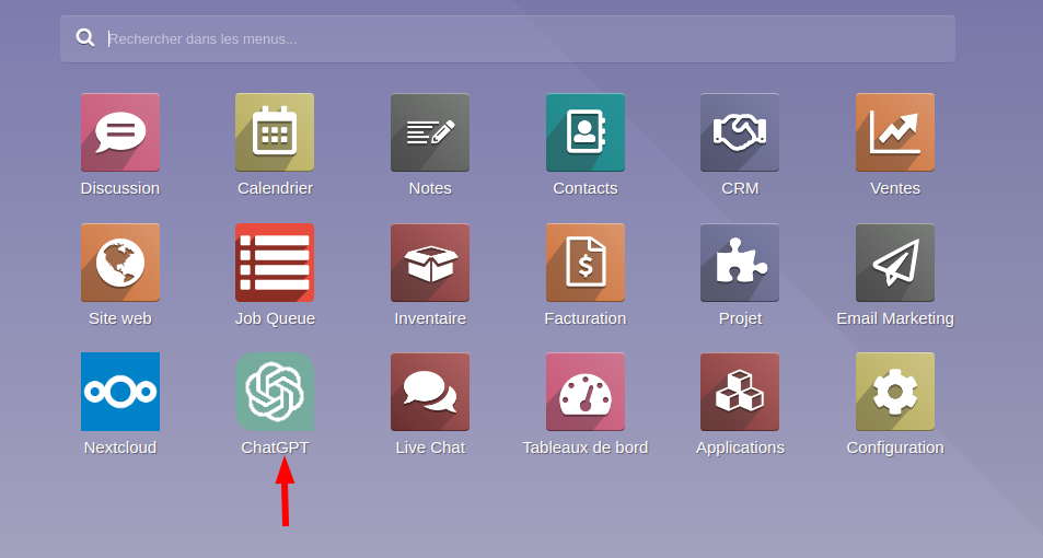 On y accède en passant par le menu principal puis l'icone ChatGPT.