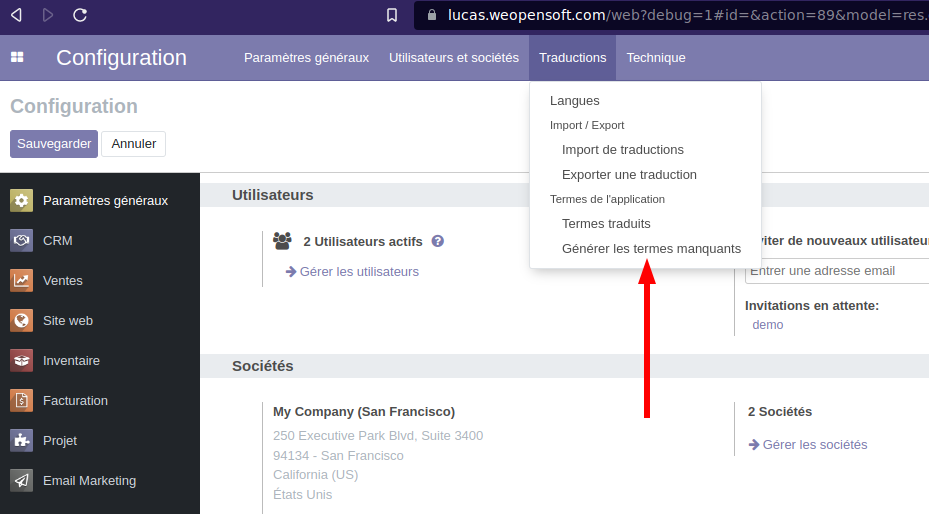 NB : Rafraichir le navigateur pour que Odoo prenne bien en compte vos changements (Ctrl + R)
