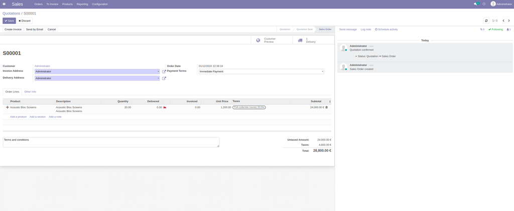 Sales est l'application qui vous permet d'exécuter votre processus de vente (du devis à la commande client) et de livrer et de facturer ce qui a été vendu.